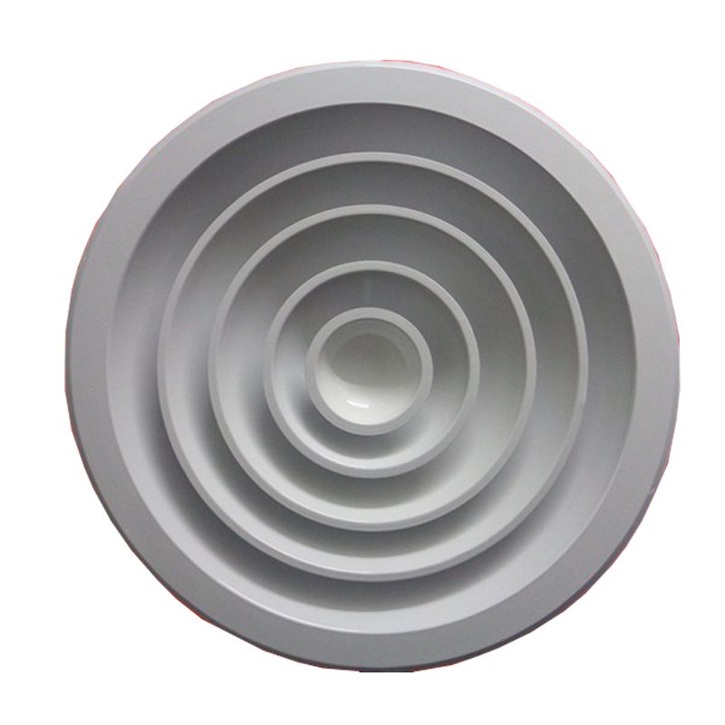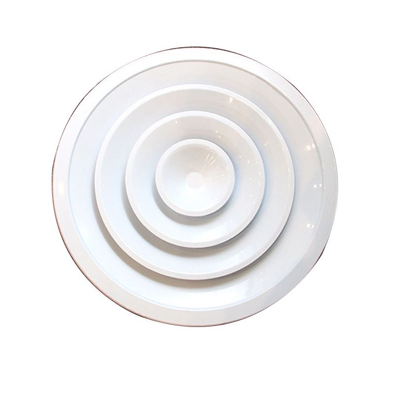 FK-8、FK-39型風口為圓形散流器,FK-8、FK-39不同之處FK-39中心和中間有小翻邊和掛鉤不同。一般用于冷暖送風。通常安裝在頂棚上。